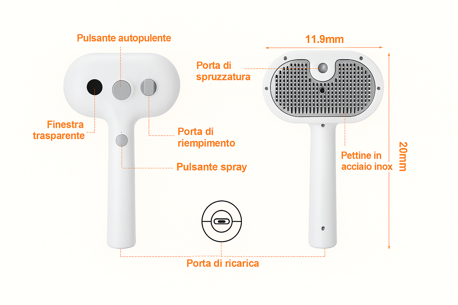 DETTAGLI DEL DESIGN DEL PENNELLO A VAPORE PER ANIMALI DOMESTICI FURGO